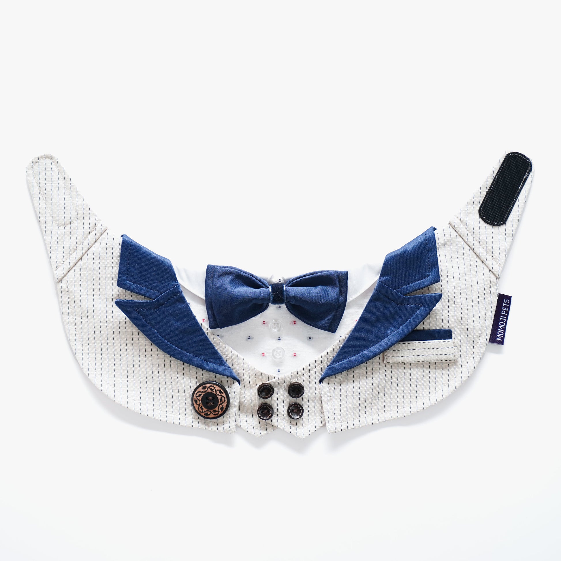 Our velcro-back design allows flexible fitting for most pets.